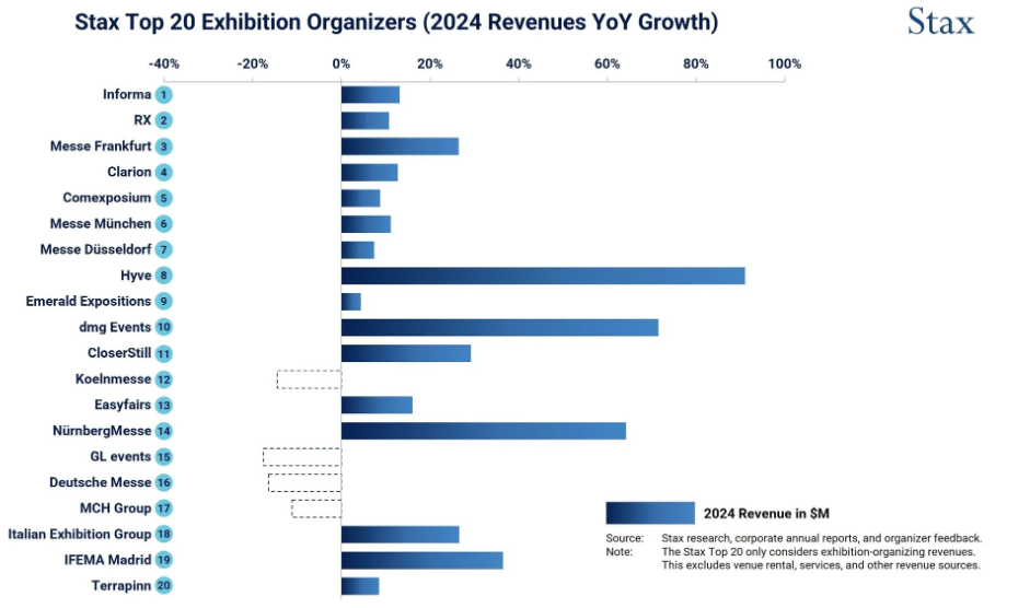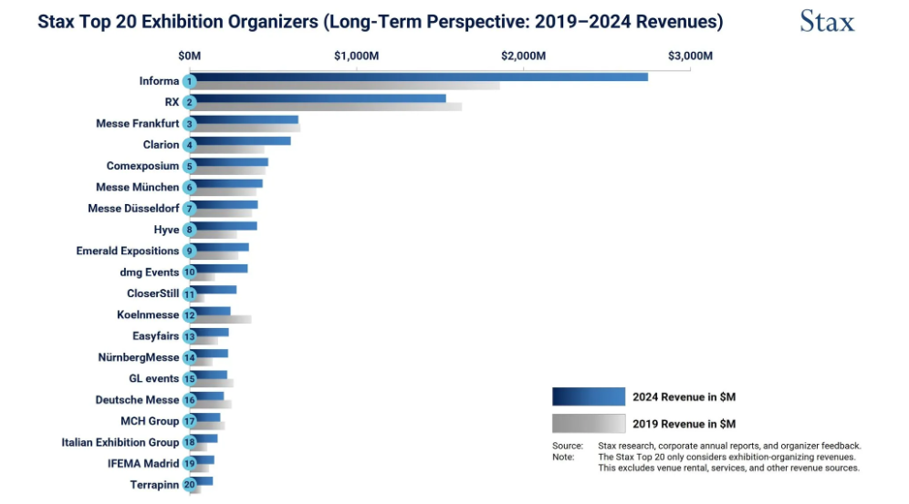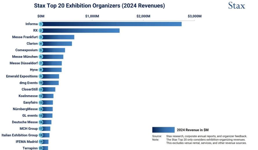 Stax:2024 年全球前 20 大展览组织者营收排名