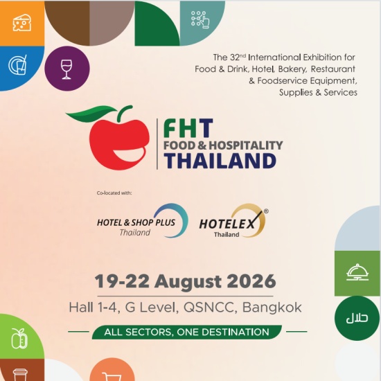 2026 年泰国国际食品饮料、酒店、烘焙、餐饮及餐饮服务设备用品展览会(FHT)迎来第 32 届。本届展会以 “一站式覆盖全行业” 为主题,涵盖食品、饮料及酒店服务业的各个领域,展示世界级解决方案与最新技术,为全行业创造合作与增长机遇。作为充满活力的行业平台,这里是创新蓬勃发展、灵感碰撞迸发、企业携手联结的核心地带 —— 推动行业持续前行,巩固泰国作为区域内食品及酒店服务业卓越中心的地位。