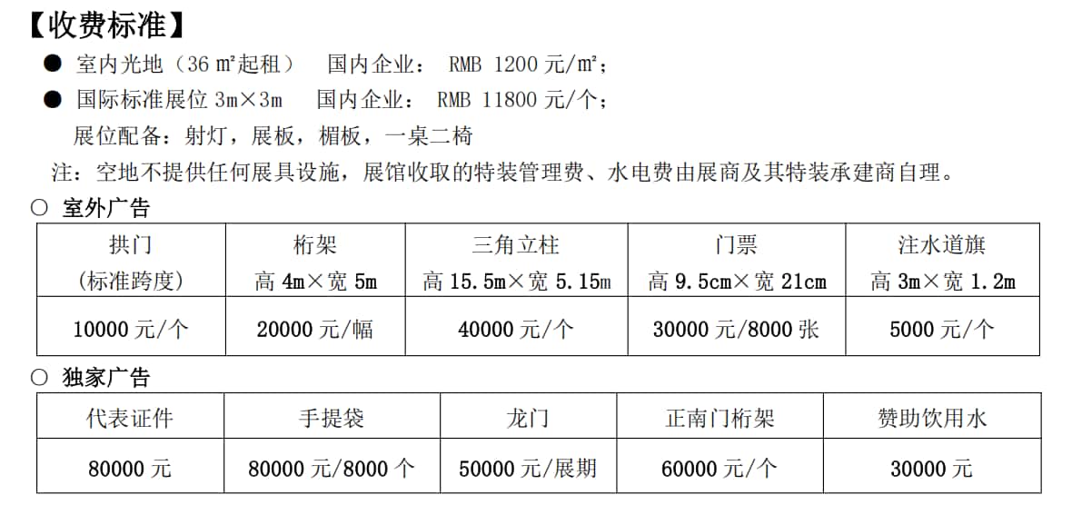 国际标准展位9平,摊位标准配置